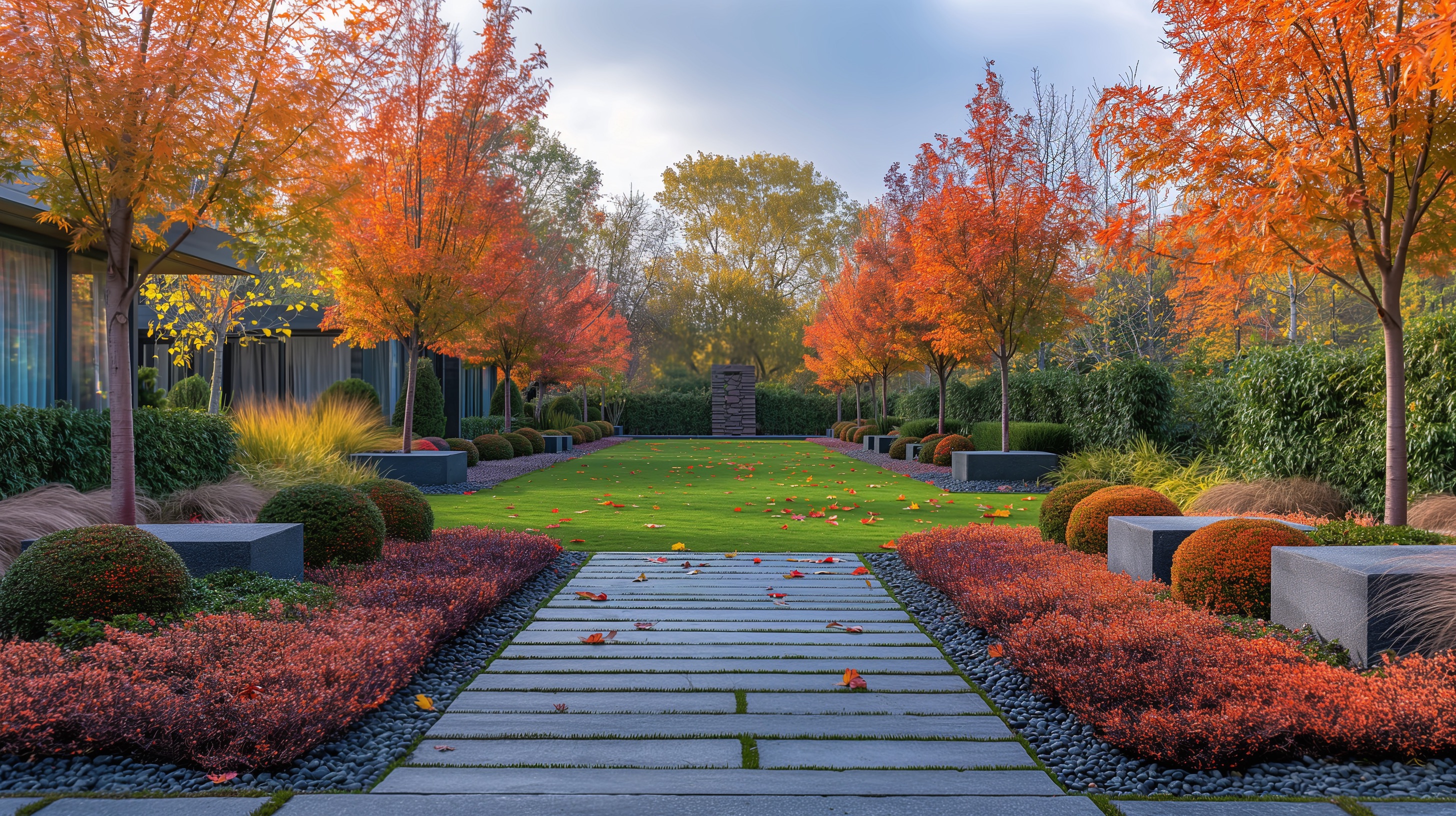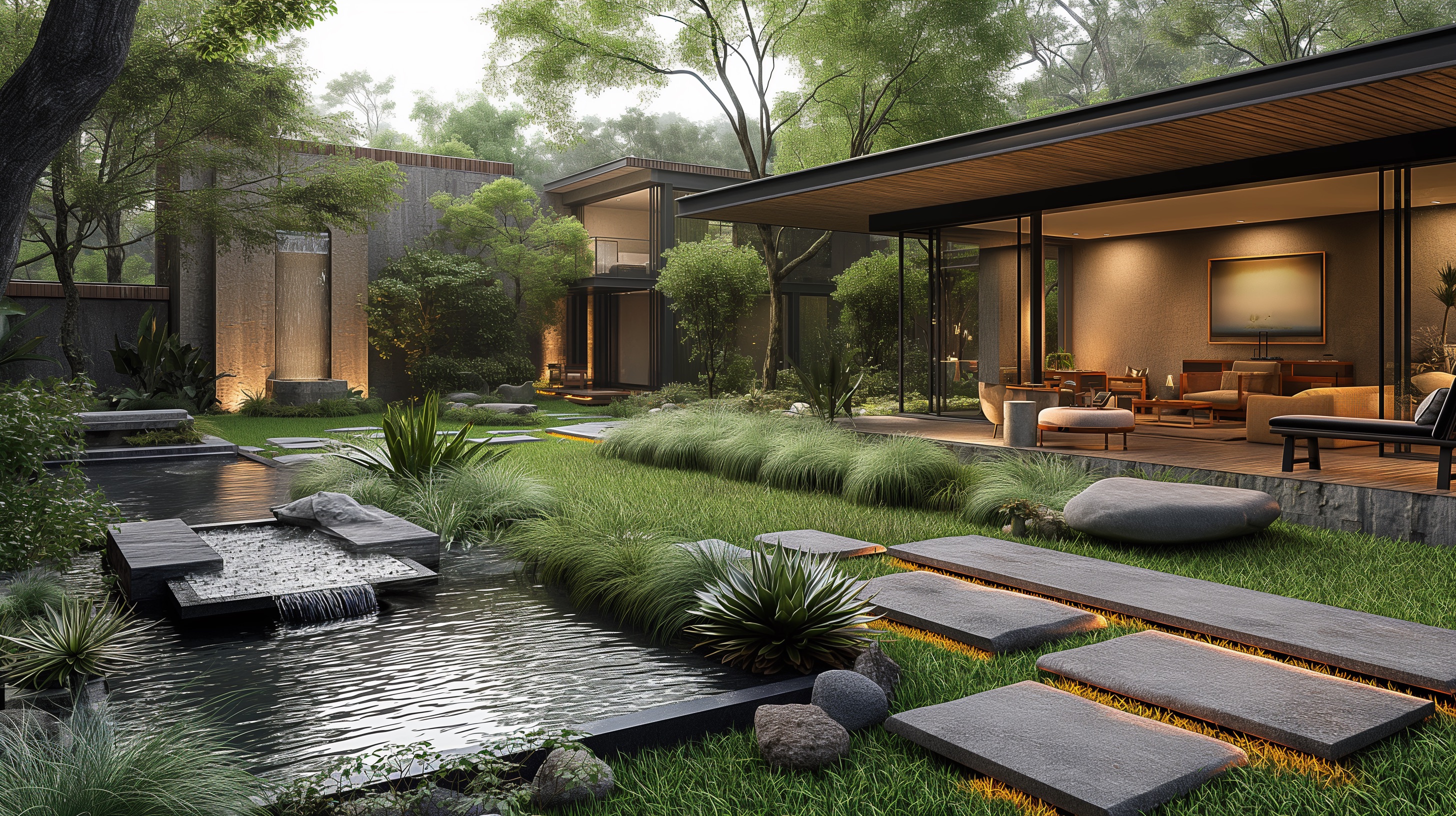 - Sustainable design with native and low-water plants